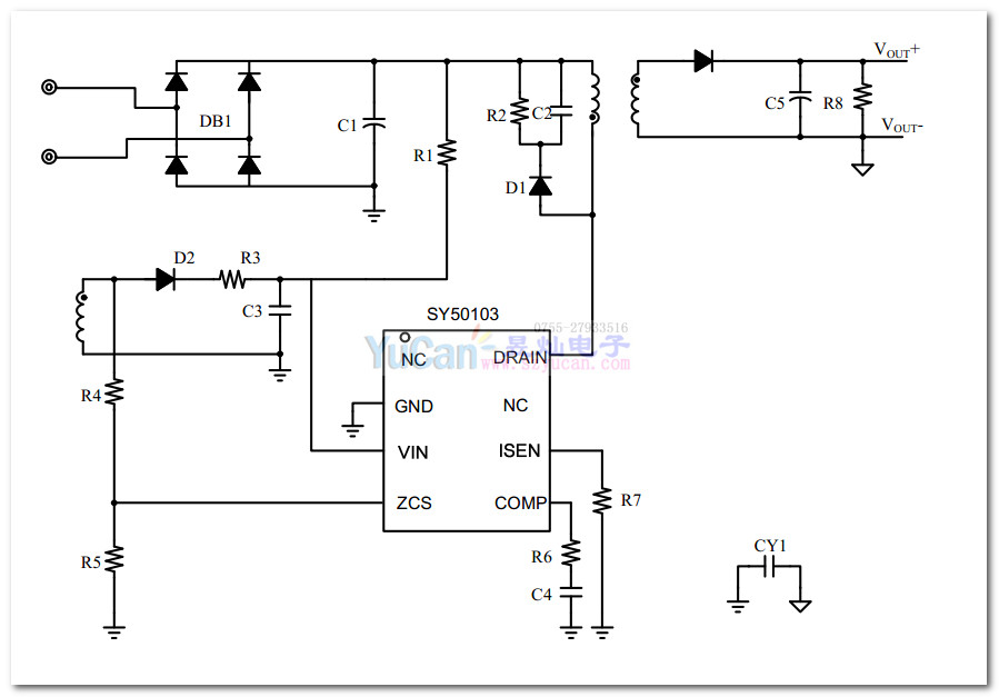 SY50103 內(nèi)置MOS管 高效率5V/1.8A AC-DC控制器