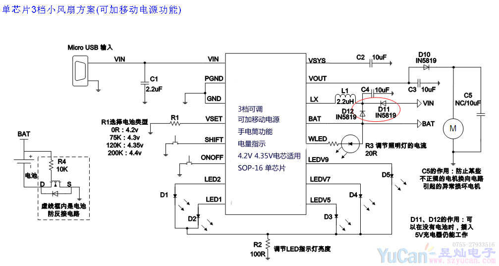 支持5V、7V、9V三檔電壓可調(diào)的便攜式電風(fēng)扇